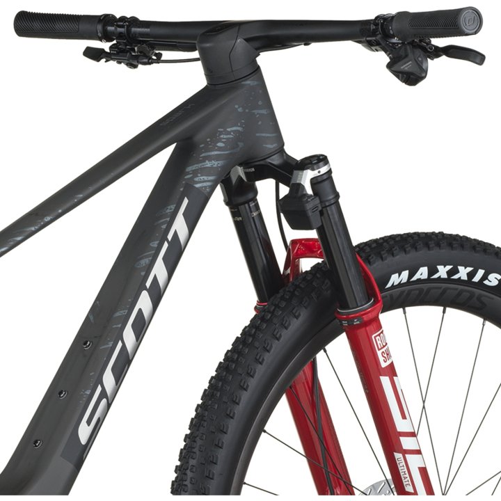 Herzstück des Bikes ist der hochwertige Spark RC Carbon HMF Rahmen. SCOTT hat hier eine Rahmenarchitektur gewählt, die den Dämpfer tief im Rahmen integriert. Dieses patentierte, integrierte Federungssystem bietet entscheidende Vorteile: