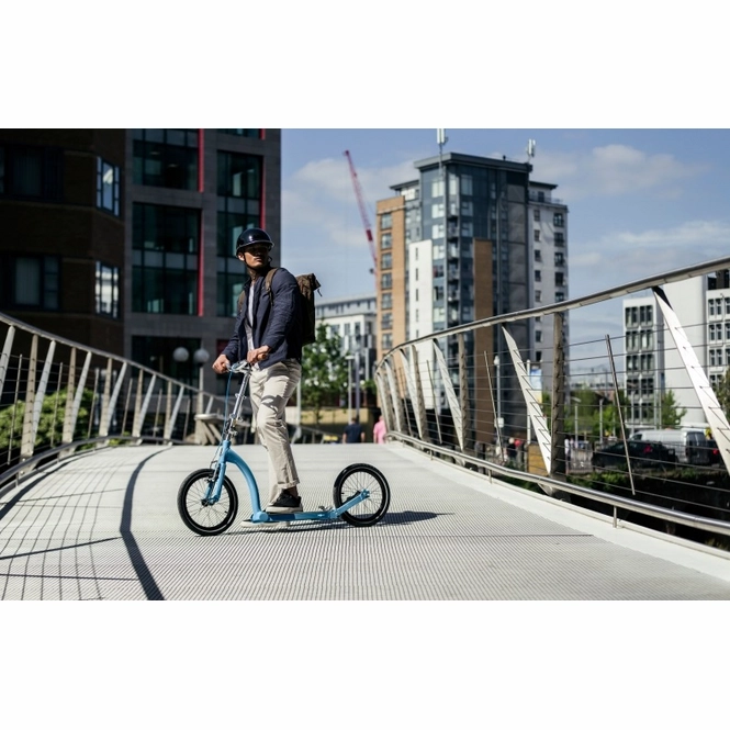Das Design des Swifty One MK3 in der frischen Farbe Echo Blue ist klar, modern und hochwertig. Er ist nicht nur ein Fortbewegungsmittel, sondern ein Accessoire, das Freude an der Bewegung und am stilvollen Auftritt in der Stadt vermittelt.